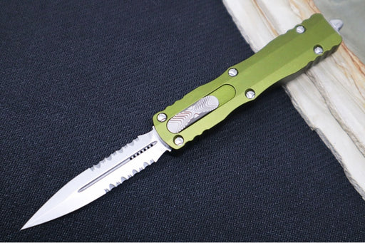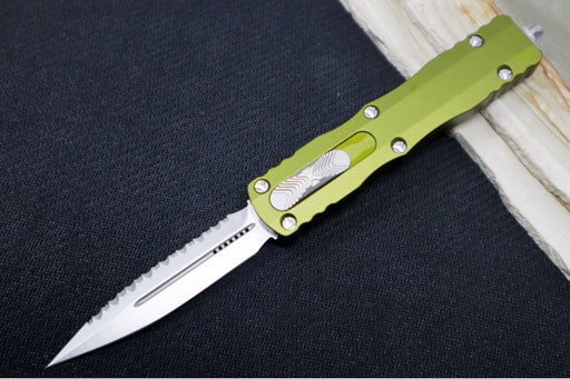 View full detailsMicrotech Dirac OTF - Dagger Blade with Partial Serrations / Stonewash Finish / OD Green Aluminum Handle 225-11OD