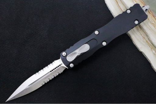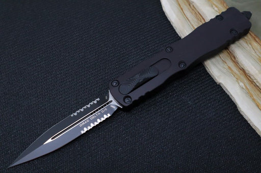 View full detailsMicrotech Dirac Delta Tactical OTF - Black Finish / Partial Serrated Dagger Blade / Black Aluminum Handle 227-2T