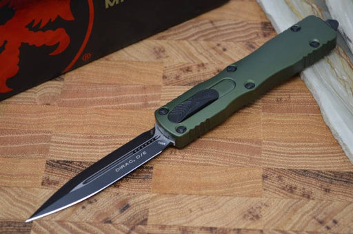 View full detailsMicrotech Dirac OTF - Dagger Blade / Apocalyptic Finish / OD Green Anodized Aluminum Handle 225-10APOD
