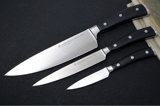 View full detailsWusthof Classic Ikon - 3pc Chef's Set - Fully forged German stainless steel (X50 CrMoV 15) - Made in Solingen, Germany