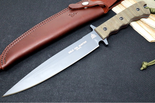 View full detailsTops Wild Pig Hunter Sniper Gray - 1095 Steel / Green Canvas Micarta Handle / Kydex Sheath WPH-04