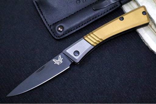View full detailsBenchmade 315BK-01 Successor - M390 Steel / Spearpoint Blade/ Black DLC Finish / Burnt Brass Anodized Aluminum & Ash Gray Aluminum Bolsters