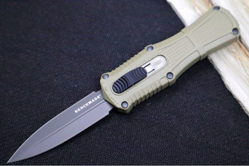 View full detailsBenchmade 3370SGY-1 Claymore OTF - Dagger Blade with Serrations / CPM-D2 Steel / Smoke Gray PVD Coating / OD Green Polymer Handle