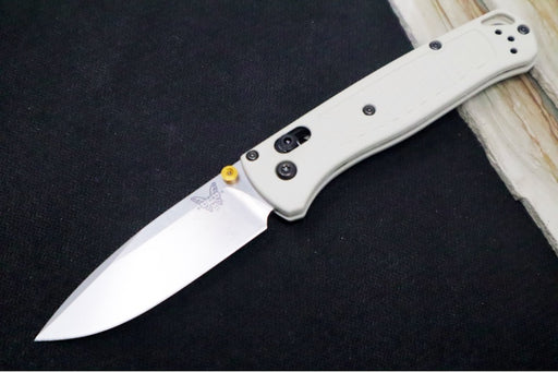 View full detailsBenchmade 535-12 Bugout - Drop Point Blade / Stonewash Finish / Tan Grivory Handle Scales