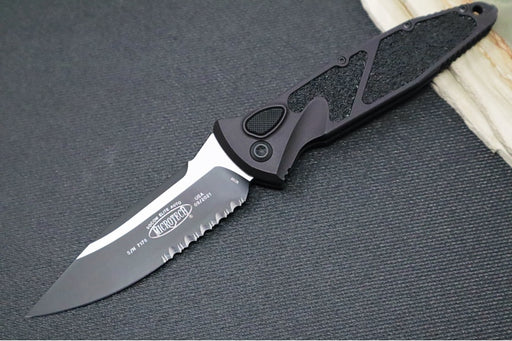 View full detailsMicrotech SOCOM Elite - Single Edge with Partial Serrates / Stonewashed Finish / Black Anodized Aluminum Handle with Black Inserts 160-11