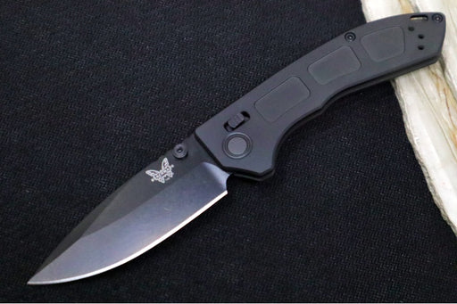 Description: The 9101BK and 9101SBK are solid performing automatic knives from Benchmade. Aluminum handles, button lock auto deployment and a supe...