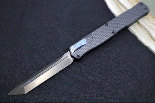 View full detailsHeretic Knives Cleric II OTF - Black DLC Finish / Tanto Blade / Black Anodized Handle & Carbon Fiber Inlay / CPM-Magnacut Steel