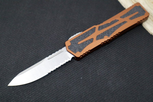 View full detailsHeretic Knives Colossus OTF - Stonewash Magnacut Serrated Drop Point Blade / Rootbeer Anodized Handle w/ Integrated Grip Tape H039-2B-RB