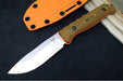 This 15002-1 Saddle Mountain Skinner has a satin drop point blade and an richlite/ orange G10 handle. This knife also has an index sheath with one side being orange and one being black.