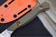 The 15700-01 Flyway is the tool for the upland job because there is no excessive amount of blade for game bird processing and this knife is easy to throw into a pack for river or stream trips. A unique blade shape made of CPM-S90V steel with SelectEdge application, OD Green G-10 handle boasting dialed-in ergonomics, and the orange Boltaron sheath make this a tool, not a toy.