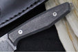 The ergonomically shaped handle scales are made of durable black carbon fiber and are comfortable to hold. They can be easily dismantled using the torx-key supplied and can be replaced by a wide range of alternative scales developed and produced in conjunction with Daily Customs. In addition, the intricately manufactured lanyard hole at the end of the handle can be turned around when the handle scales are dismantled so that it disappears into the handle. It is made of Damascus, just like the complete full tang, with minimal manufacturing tolerances. This means that the knife can be adapted to your own requirements in the shortest possible time and modified according to the situation.