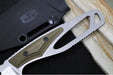 Skeletonized Steel/Green Canvas Micarta handle for a great grip in all weather conditions