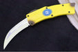 Heretic Knives Freshly Peeled Stabana OTF - Yellow & Brown Anodized Aluminum Handle / Yellow Cerakote Finish / Single Edge Hawkbill Style
