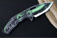 Heretic Knives Medusa Manual Flipper - Hand Painted Negative Cel Shade Tanto Blade / CPM-Magnacut Steel / Hand Painted Negative Cel Shade Aluminum Handle with Black Grip-Tape Inlays H009-NCS-TX