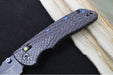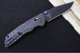 - Solid Black Carbon Fiber Handle Scales w/ Blue Anodized Hardware
