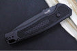 Enter the tactical cutting world with the Launch 16, featuring a partially serrated tanto blade and extremely high edge retention. This automatic opener withstands the toughest cutting tasks with a thick blade profile and high-end M4, a balanced super steel with superior hardness and toughness. The tanto blade shape is ideal for piercing cuts, and the partially serrated edge will easily saw through rope. Trac-Tec handle inserts, oversized jimping, and a finger choil allow you to grip the Launch 16 securely. This push-button rocket is all stealthy with a black anodized handle and a black Cerakote blade. Carry it comfortably on the go with a reversible deep-carry pocket clip. While discreet, the Launch 16 also makes a lot of noise with a standout blade and unbeatable ergonomics.