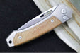 The creation of this remarkable knife was no easy task; it features an innovative button-lock mechanism and a solid frame and scale design known as the "Double Integral." This cutting-edge structure involved precise milling to ensure an impeccable fit between the frame and scale, delivering both flawless functionality and stunning aesthetics. Crafted from CPM-MagnaCut steel, renowned for its toughness and outstanding edge retention, the blade showcases a beautiful satin finish. The frame is constructed from durable titanium, while the scale is meticulously milled from a solid block of either carbon fiber, Canvas Micarta, or G10, depending on the version. This thoughtful blend of materials not only enhances durability but also elevates the knife’s visual appeal to an irresistible level.