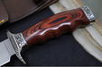 Muela proudly honors the tradition of classic hunting knives with the exquisite Sarrio-19R. This knife boasts a premium X50CrMoV15 Bowie blade, elegantly complemented by a beautifully adorned Zamak guard. The handle, crafted from rich pakka wood, features a stunning decorative pommel that adds a touch of sophistication. Every Sarrio-19R is accompanied by a custom-fit leather sheath, seamlessly marrying functionality with timeless elegance.
