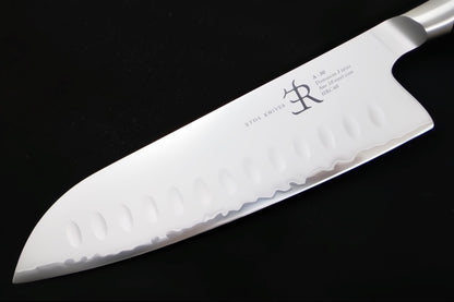 Ryda Knives A-30 7" Santoku Knife - 3 Layers High Carbon Damascus Steel - Stabilized Figured Walnut - Made in Sweden, Japan