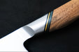 The blade features a 3-layer steel with a renowned Aus-10 steel core, celebrated globally for its exceptional performance. With a hardness rating of 60 HRC, it not only allows for effortless sharpening when necessary but also withstands the rigors of demanding kitchen tasks. Enhanced by a vacuum treatment process, this steel boasts remarkable durability. The edge is expertly sharpened to 15° on each side, ensuring that regaining its sharpness is a breeze. The handle, crafted from beautifully stabilized walnut wood, further enhances the knife's appeal, gaining added hardness through our proprietary vacuum treatment process.