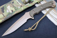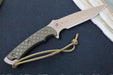 This ARES is a flat dark earth DLC coated blade with green micarta textured handle.