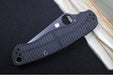 Cloaked in a non-reflective Diamond-Like Carbon (DLC) coating, the PlainEdge blade is housed in a handle featuring peel-ply-textured black G-10 scales machined with the signature Caribbean Bi-Directional Texture pattern of Spyderco’s US-made Salt Series knives. To complement its blade steel and finish, the knife’s nested stainless steel liners, four-position pocket clip, and all other hardware are also made from ultra- corrosion-resistant materials and black coated.