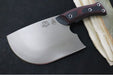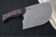 This XXL Dicer has a cleaver blade in 440C steel with red/black G10 handles and a black kydex sheath.