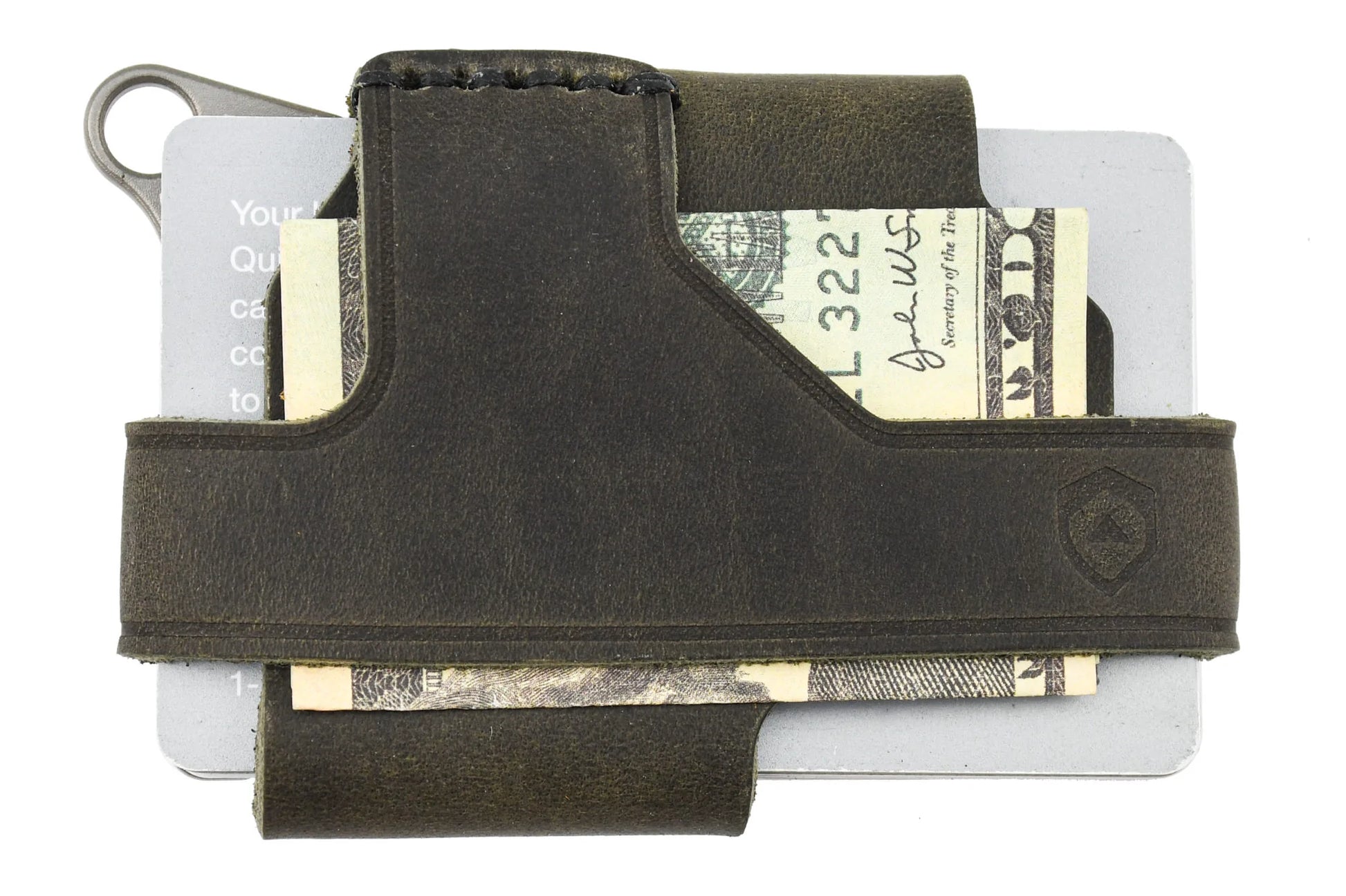 - Leather strap fits up to 13 cards and 10 bills